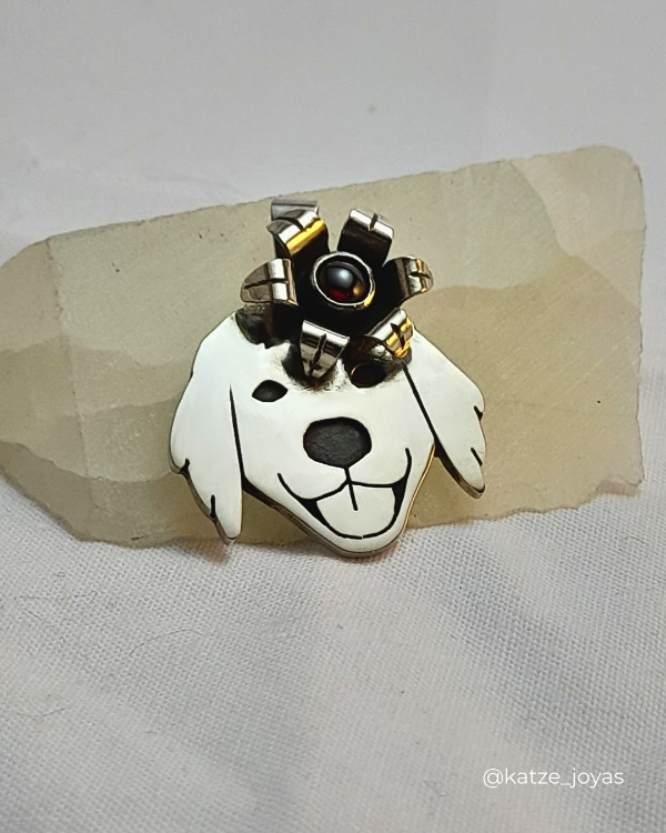 Dije de perrito con flor y centro de DELICADA piedra granate ♥