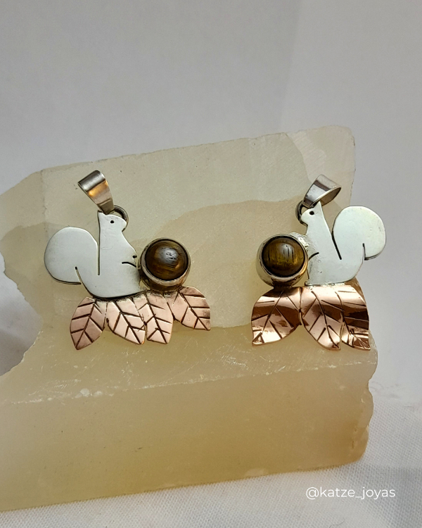 Dije de Ardilla con piedra Ojo de Tigre - y detalles en COBRE, en dos opciones:
