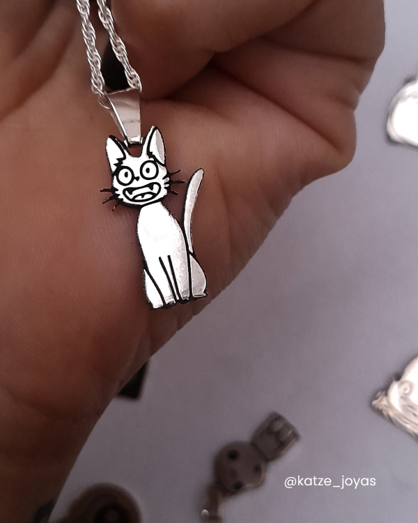 Llevá con vos la magia y el encanto de Jiji, el icónico gatito negro. Hecho de forma artesanal y grabado en plata 925.