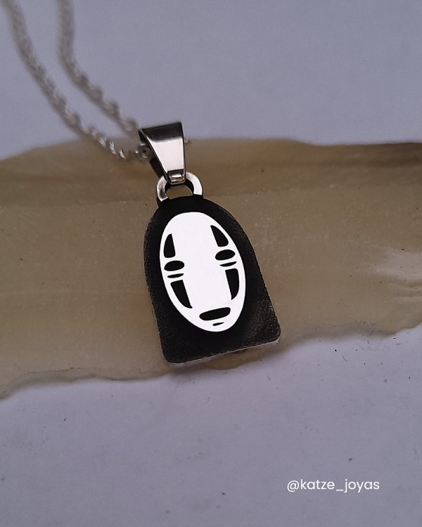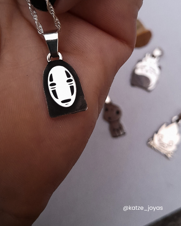 Misterioso y enigmático, Sin Cara cobra vida en este dije artesanal de plata 925 grabado con precisión. Un imprescindible para los fans de Ghibli.